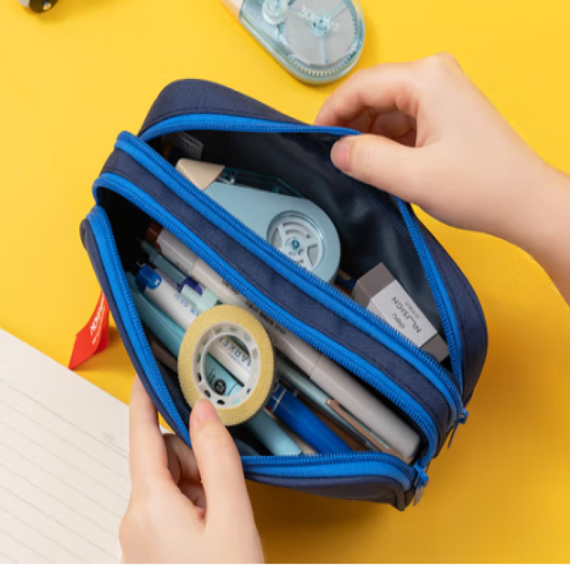 Deli Double-Layer Pencil Case, Dark Blue