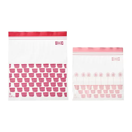 ISTAD Resealable Bag, Patterned Red/Pink, 2.5/1.2 L