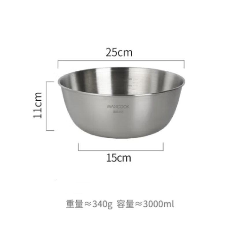Salad Bowl , Graduated 25cm, Stainless Steel 3L
