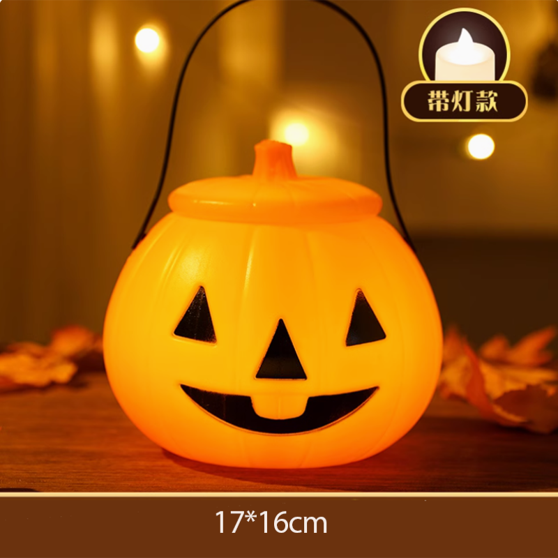 Decoration Pumpkin Bucket With LED Candle .17cm*16cm