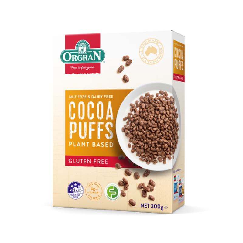 Orgran Cocoa Puffs make for a delicious chocolatey breakfast or yummy party snacks. Gluten Free, Dairy Free and Vegan, the whole family will love them