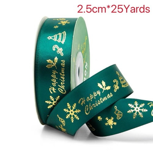 Christmas Green Ribbon with Gold Hot Stamping Decorative, 2.5cm*25 Yards
