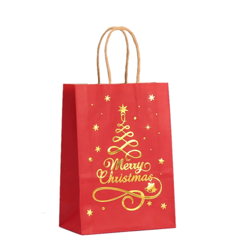 Gift Paper Bag,Red Gold-Pattern Christmas Tree 21*15*8cm