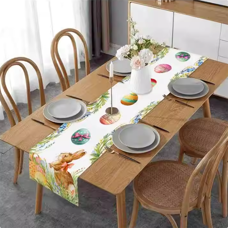 Linen Easter Bunny and Egg Table Runner 33*183cm