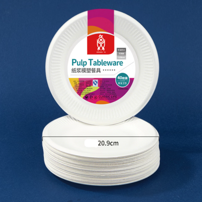 SHUANG YU Disposable Pulp Plate, 8 Inch*40pcs