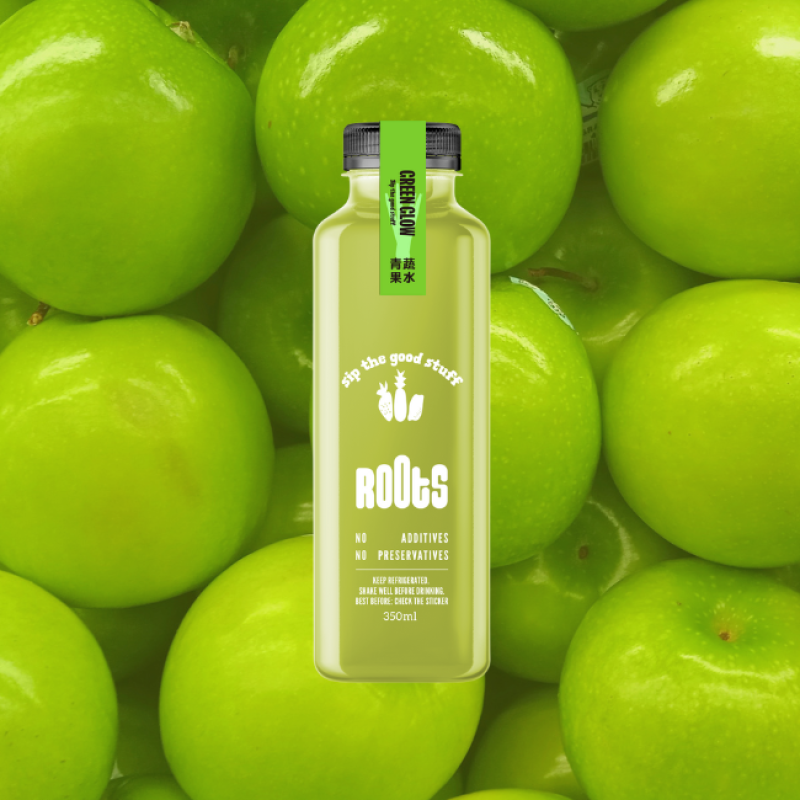 Ingredients: Apple juice, cucumber juice, lemon juice, pineapple juice, mint leaves.