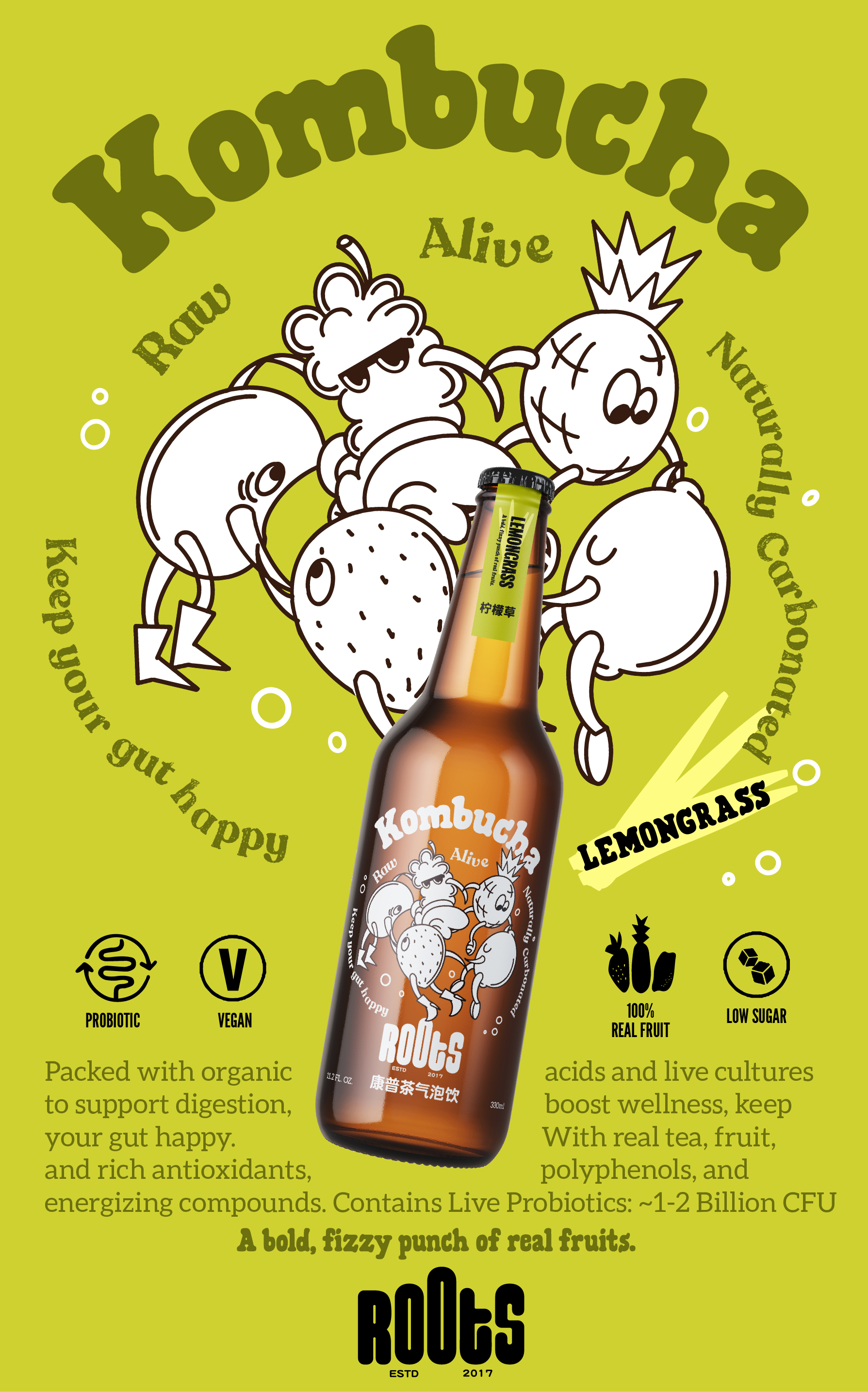 Ingredients: Filtered Water, Black Tea, Kombucha Cultures, Sugar (<5%), Fresh Lemongrass
