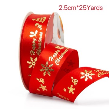 Christmas Red Ribbon with Gold Hot Stamping Decorative, 2.5cm*25 Yards